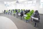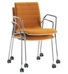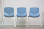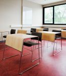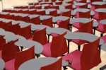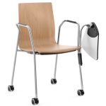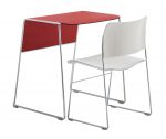 - Stühle mit einem integrierten Schreibtablar, leicht entfernbar und meist mit guten Stapeleigenschaften.