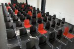 - Stühle fest montiert, meist in Form einer aufsteigenden Bestuhlung. Dass diese Form der Bestuhlung keineswegs starr ausgerichtet sein muss, zeigen unsere Lösungen, die wir mit der Firma FOUR DESIGN verfolgen